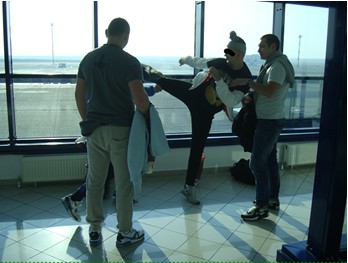 При переходе на планер до Рима тоскливые молдаванские цыгане отбирают у парней различные напитки (парни не забыв туда смачно харкнуть с печалью и грустью расставались с ними), а у меня мои приборы которыми я создаю шедевры на головах своих клиентов, также меня, как качающего права больше всех вообще собирались ссадить с самолета если я не утихомирюсь…