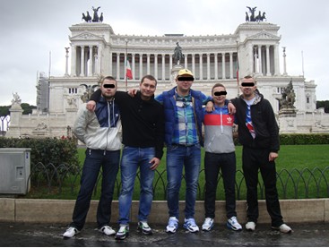 Итак, в поездку мы отправились квинтетом: в составе фана стилиста-визажиста то есть меня, фана Толича который болеет за Олича, фана Матюхи который весь выезд страдал о своей недоступной подруге, он же фан Ковырялка и он же фан Бородатая печалька ну и остальные 2 личности не очень примечательны это фан Бабай, он же фан Обидчивый и фан Неудавшийся топ он же фан мистер Колотсуки, он же рецедивист с подпольной погремухой Воочела Can I take this, также во Флоренции к нам присоединился дико топовый и авторитетный фан Лось (которого немного обгоню события мы забыли в альпийской деревни на границе Германии с Австрией и что с ним случилось мы долго не знали, но буквально пару месяцев назад он прислал почтового голубя, что все у него в кайф жена альпийская корова и куча подрастающих бычков).