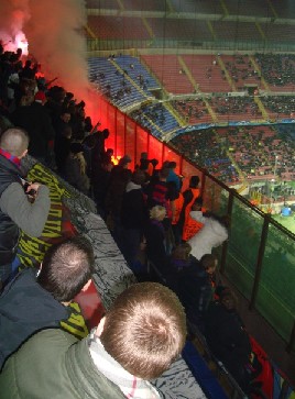 Про Милан что писать не знаю ибо по мне город довольно таки уныл, может веселье наступает и он преображается во время распродаж, но я к сожалению не знаю. Единственное, что можно отметить это красавец «Сан-Сиро» (его можно всегда отмечать), и русско-польско-сербский общак…Честно говоря мои писаки на фанстайле, я был поражен, если не сказать даже ахуевал, когда у многих польских товарищей в руках видел (про арматуры, дубины различной величины я вообще не говорю) лыжные палки, молотки, молотки для отбивания мяса, тяпки!!!!!!, совки для прополки, и другой сельско – хозяйственный и бытовой инвентарь…Но к сожалению удача тогда не сопутствовала славянскому войску, и то ли из-за тупки скаутов, то ли еще по каким причинам, вышли не к месту где дислоцировались около 60-80 пицамейкеров, а прямо на местных карабинеров…В итоге ничего!!!!! Потом было то ради чего мы сюда приехали, просто космический футбол (так как Гинер может все купить не только в России)))), победа 1:2, и выход в следующий этап…Как говорится «Билеты на самолет – 15000 рублей, проживание в гостиницах – 120 ойро, билет на футбол – 45 ойро, нагнуть интер – бесценно» Т.к. в Европе все умирает часов в 21-22, да и все порядком были уставшие, сил на отмечание не было, да и до собаки на Мюнхен оставалось 3 часа сна, чем мы и непременно решили воспользоваться.