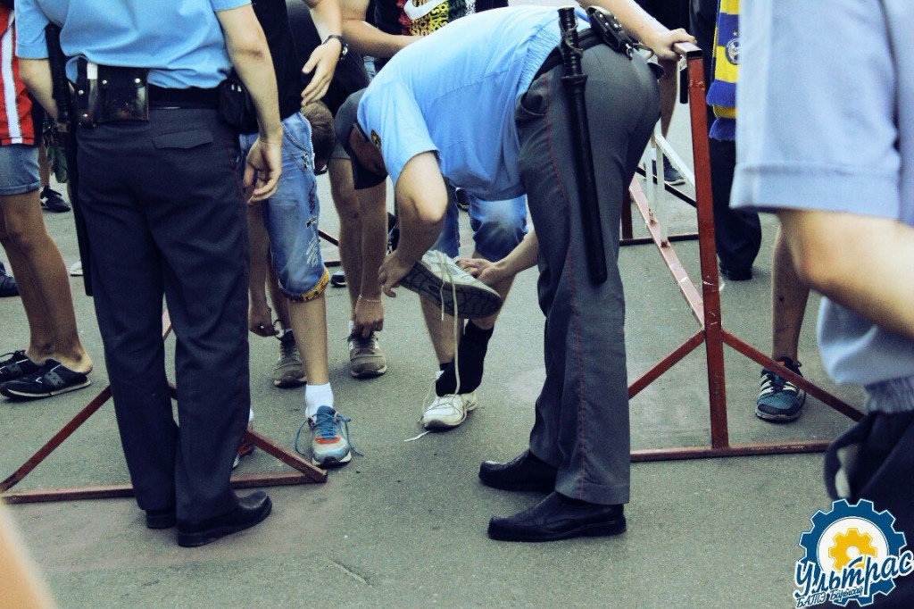 На матча с Неманом была подготовлена ультра на совсем необычную тему для нас , да и для Беларуси наверное тоже . Тряпка была посвящена В. ЦОЮ . Который 25 лет назад в этот день 15.08.1990 погиб в автокатастрофе . Слова на растяге были подобраны из одноименной песни ЦОЯ.