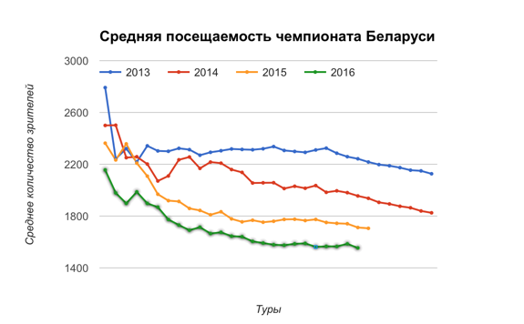 Средняя посещаемость турнира опустилась до отметки 1 552 зрителя. Такой низкой цифры еще не было ни разу в истории проведения чемпионатов Беларуси. Прежде самым малопосещаемым стал чемпионат-2015 – 1 706 зрителей. Сейчас этот показатель упал на 158 зрителей (8,9 процентов).
