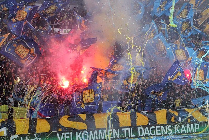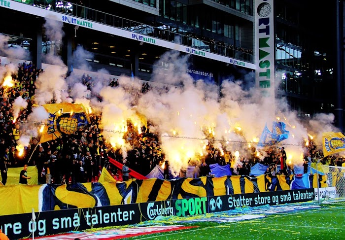 В ходе матча между ФК Копенгаген и «Брондбю» фанаты обоих клубов зажгли, что называется по полной.Игра закончилась победой столичной команды со счетом 3:1, после которой победитель прочно закрепился на третьем месте в турнирной таблицы.