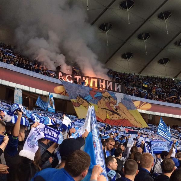 Днепропетровский Днепр обыграл во втором полуфинальном матче Лиги Европы итальянский Наполи и впервые в своей истории пробился в финал Лиги Европы. Belultras.by не мог пройти мимо такого события и собрал воедино лучшие фотографии трибун с данного матча