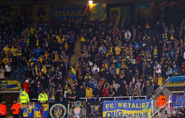 Cектор Днепра. Порядка 80 человек на выезде…Харьковчане вроде как вывезли 500. Любопытно как сильно разнятся цифры :) Чувствуется уровень поддержки своих фанатов клубами.