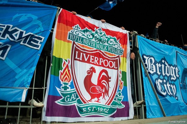 Наверное самое обсуждаемое событие этого матча — отжатый баннер фанатами Зенита. До матча в интернете была информация о том, что фанаты Зенита будут вести охоту на Бритишей. Была информация, что в городе группы фанатов Ливерпуля были атакованы СБГ. Один из баннеров удалось отжать.