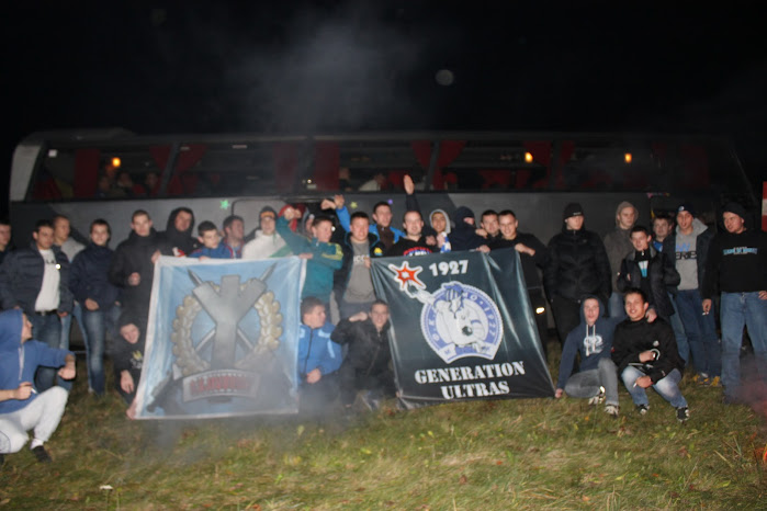 — Безусловно, выезд в Жодино затмевает собой все остальные. ) Но не могу не вспомнить свой самый первый выезд. Это был май 2009 года – выезд в Лунинец на матч Гранитом. Пробивал я его на брестском поезде. Приехал ночью в Лунинец. Куда идти не знаю. Вокруг темнота и тишина. Решил пробить местную комнату отдыха на вокзале, а утром двинуть в поисках стадиона. Так и сделал. Придя к стадиону, увидел толпу «аборигенов» возле касс. Люди стояли в надежде купить билеты на матч. Но в продаже их не было. Я простоял там около часа, пока к нам не вышел, кто-то из администрации стадиона. Представитель объявил, что почти все билеты уже проданы и остались только резервные для «приезжих головорезов из Минска» (именно так))), И пока не станет известно, сколько будет «гостей», билетов для местных не будет. Естественно местная «кузьма» была обозлена, и при первой же возможности провоцировала «Бело-синих». Позже, из-за провокаций со стороны «аборигенов» несколько БС попали в милицию. Билет на матч мне всё-таки покупать не пришлось, так как всех приезжих фанатов провели на стадион бесплатно. Матч команда проиграла. «Шиза» была не очень из-за стоявшей жары. Температуру на трибуне подняли фаера, зажженные после забитого гола. Тут же, на сектор влетели «доблестные». Начали паковать «правонарушителей», а заодно и тех, кто был рядом. В том числе, чуть не забрали и меня. Всё обошлось, иначе первый выезд я бы запомнил ещё лучше. )