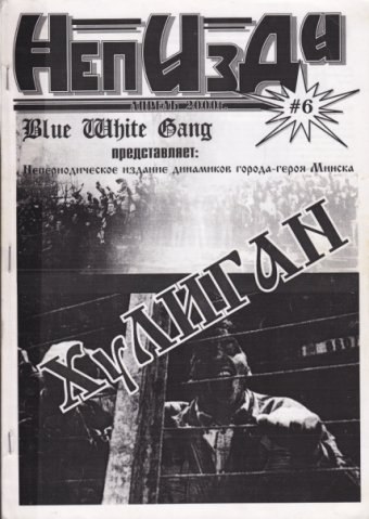 В то же время распространять журнал стало сложнее. Милиция начала проявлять к нам какое-то внимание. Пока нас было мало, силовиков не интересовало, что мы издаем, но с ростом численности движа за нами стали следить. Однажды Шпака с кипой журналов под мышкой задержали, когда он тусовался возле «Динамо» и продавал 6-й номер. Мы тогда еще прикололись и назвали журнал «НЕПериодическое ИЗдание ДИнамиков Минска», но написали только заглавные буквы. Вот с этим «непи###и» его и взяли. Подержали в отделении и отпустили. Это было в 2000-м. Но милиция не особо прессовала и с обысками домой не приезжала. Это сейчас из фанатов сделали экстремистов.