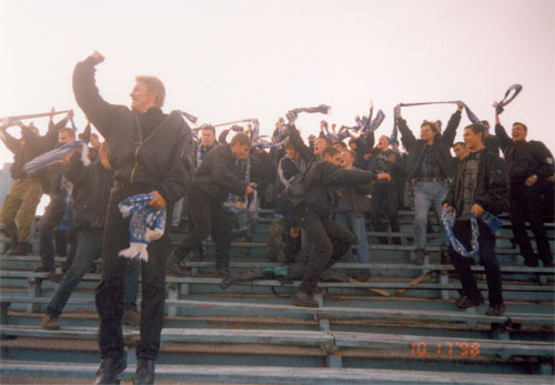 За 90 минут футбола гостевой сектор не удовлетворил свои амбиции и почти в полном составе переместился к раздевалкам, устроив там вечер слэма и пляски. Полсотни глумливых мамонтов давали такого жару под «Лабуса Трубецкого», «Иванушек» и Киркорова! Даже «Третий тайм» заснял!
