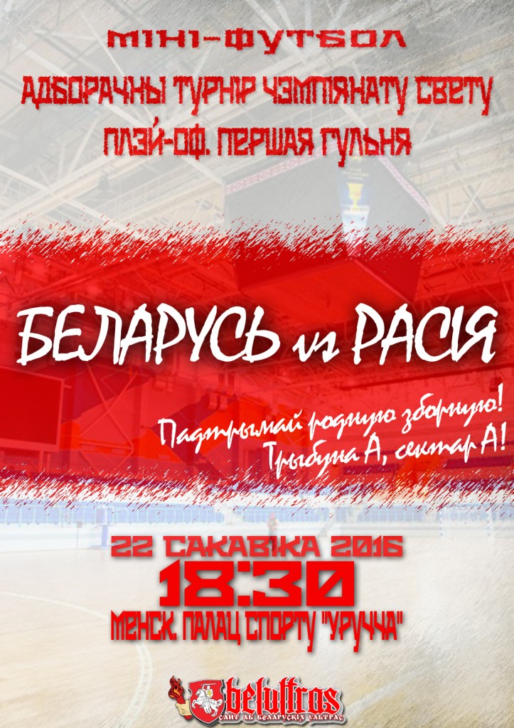 22 марта во Дворце спорта «Уручье» состоится матч плей-офф чемпионата мира между сборными Беларуси и России. Начало матча в 18.30. С радостью объявляем, что на данном матче будет организован фанатский сектор сборной Беларуси! Фансектор сборной Беларуси будет располагаться «Трибуна A, сектор A». Все на сектор, все в красном!