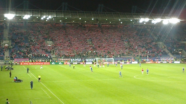 Представляю, на каком взводе была краковская полиция в тот день. На нас однако это никак не сказалось. После матча ожидали возможного вязалова и вычислялова за пиротехнику, но все к счастью обошлось. Подержали еще некоторое время возле стада, после чего, опять же, в сопровождении, отправили восвояси.
