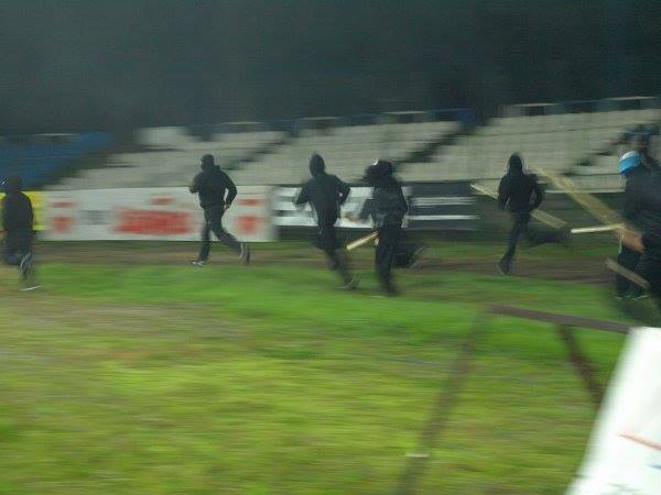 Очень оперативно подъехала тачка, из которой тайняки (сотрудники в штатском) вели съемку, поэтому все снялись с места. До собаки было около получаса, чтоб не маячить таким составом на перроне, вышли к главному ходу. Отсюда, собственно, самое интересное и начинается. В считанные минуты приехало несколько полицейских радиовозов с пидарасами в черном внутри. Парни потом объясняли, что это вроде как отделение анти-террор. Обыватели недоуменно взирали на космонавтов в масках и броне, которые кроме дубинок имели при себе еще и помповые ружья. Сразу все вроде было чинно, пока кто-то не рванул пару петард. Реакция псов мгновенна — виновные повязаны для составления протокола, а тех, кто хотел вписаться за товарища, очень жестко оттеснили от вокзала. После этого началась перепись и съемка. Увидев белорусские паспорта, позвали какого-то главного. Тот долго что-то пытался вкурить, по итогу выдал что-то в стиле — мне тут своих отморозков хватает, так они еще и заграничных притянули. Пока шла перепись, нужная собака уехала. На удивление, мусора беспрепятственно дали всем пройти на перрон, что сразу навеяло какие-то сомнения. Грузимся в вагоны, псы естественно на с нами (куда ж без них). Ехать как от Борисова до Печей, ждали по дороге возможной атаки камнями либо срыва стоп-крана, но вроде все тихо.