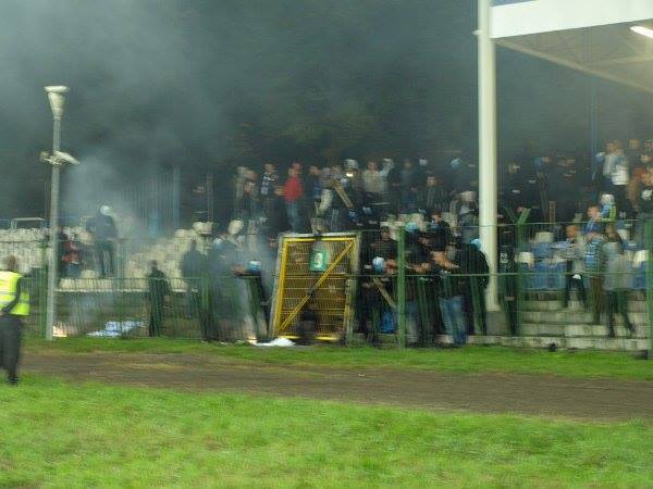 В целом сектор Вислы очень понравился, крутая баннерная линия, заряды нон стопом (несколько раз по ходу матча поприветствовали зарядами свои згоды – Лехию и Шленск), да и людей, как писал уже было в поряде. Это с учетом того, что еще рыл 300 в то же время присутствовали на матче краковского Хутника и своей згоды – Унии Тарнув. Скину только несколько фоток с того матча.