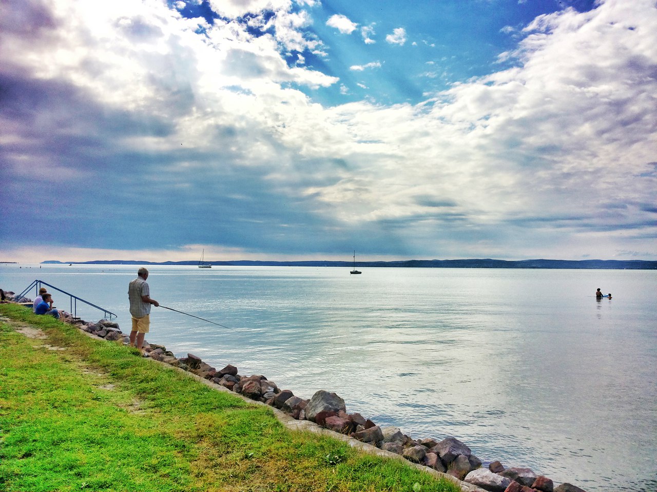 Вторник. Утро. Подъем. Опохмел (кому нужно). Завтрак в одном из кафе – и пора выдвигаться на озеро Балатон. Возвращаемся к припаркованному невдалеке бусу – под лобовиком уже лежат 2 штрафа. За неоплаченную парковку судя по всему, и еще какой то, хрен их там поймешь с языком ихним. Вы нам его выписали – вы и оплачивайте! Ехать около сотни км, причем в Секешфехервар потом надо возвращаться, так как он по пути. Остановились в городе Шиофок, он был ближе всего. Места там действительно живописные, только вот озеро у берегов мелковато – метров 100 надо пройти, чтоб хотя бы по шею вода доставала. Искупались, отдохнули пару часов. В это время отзвонили гливичане и сообщили, что по пути попали в ДТП и, скорее всего, будут возвращаться домой. Ну что ж – главное все живы-здоровы, а выезд – он ведь не последний.