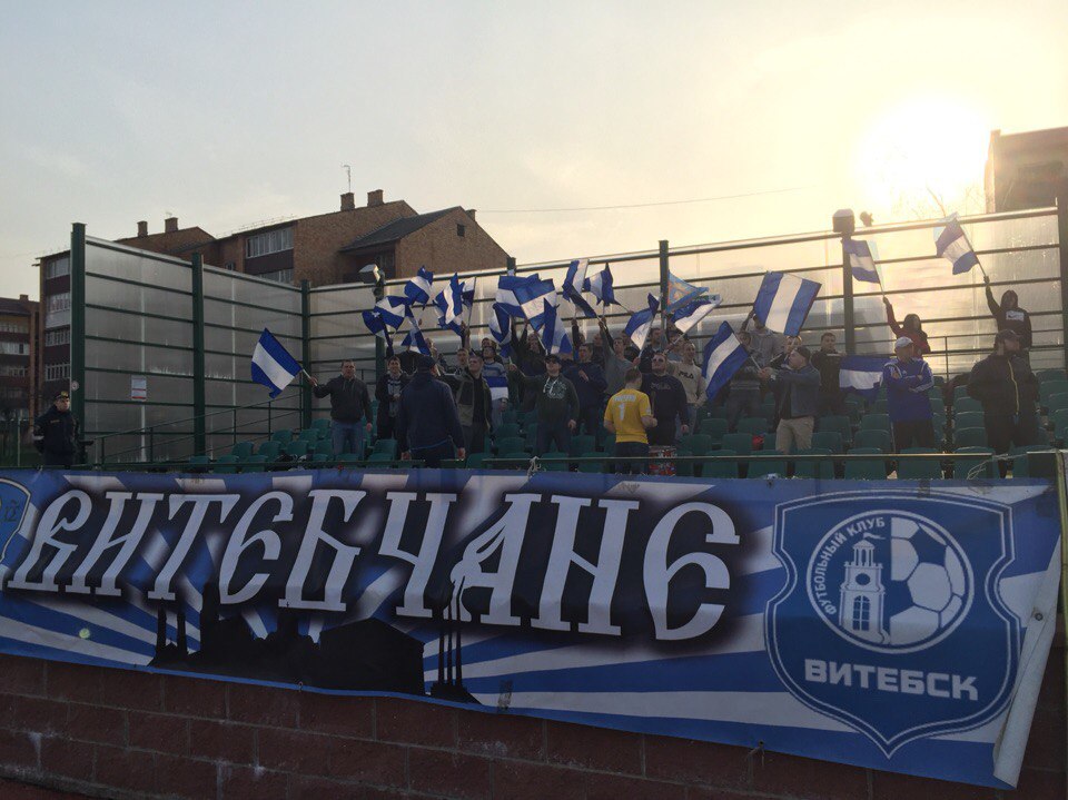 По сектору у нас 40 человек ,из визуального уже знакомые передние баннера и флажки на древках в руках из звукового почти нон-стоп с пару новыми зарядами . У сектора напротив человек 70 ,временами довольно шумно но в тоже время довольно весело с зарядами про «налитые стаканы и танцующих девчонок» ,так же нелепо смотрелось развеска лицевиков красно-черных когда они висели за спинами людей и не были видны . После игры наша команда в полном составе у нашего сектора ,совместные заряды и общая радость , белшиновцы мутят какие то повороты и разбор игры со своими игроками .