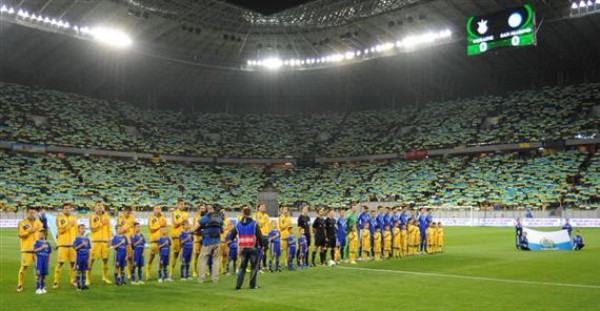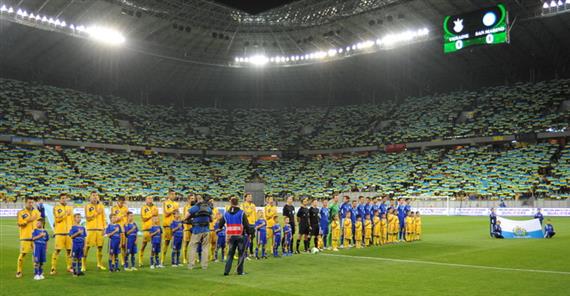 Сам же стадион встретил команду огромным количеством жовто-блакитных флагов