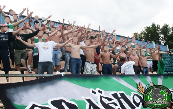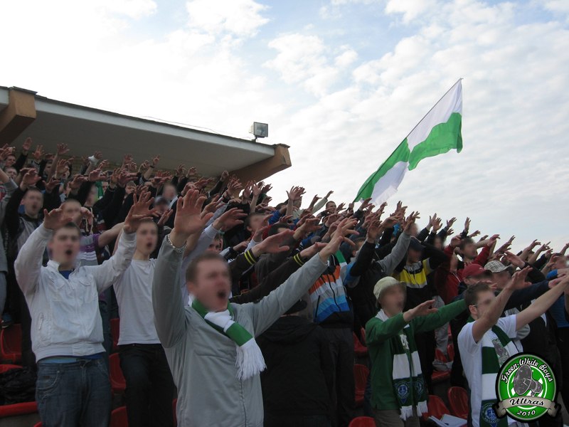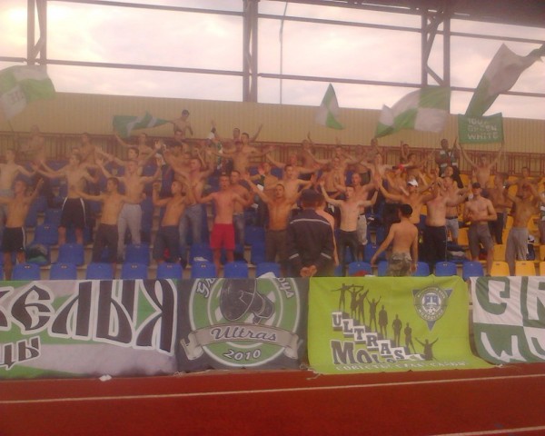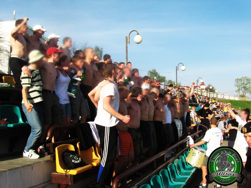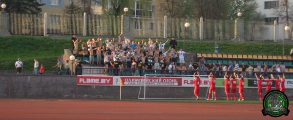 Ну а в остальных городах в этом сезоне одни неадекваты. Особенно выделяется Жлобин. Там не стой, сюда не смотри. И если в каких-то городах, милицыянты хоть что-то могут сказать, то в Жлобине сразу грозят отделением. В Слониме тоже был запоминающийся кадр, Майор вроде бы, который знает только одно слово – нельзя! В Гродно так же, были проблемы. Ни шага не давали сделать в сторону. Не выпускали из автобуса по прибытию на стадион, несмотря на то, что было очень душно. Не разрешили пронести баннеры и даже повесить растяг, с поздравлением с днем рождения нашему игроку. Вообще по причине неадекватности милиции, на некоторых выездах не удалось пронести флаги, двуручники. С трудом проносили барабан и колотушки, хотя и реестр в порядке.
