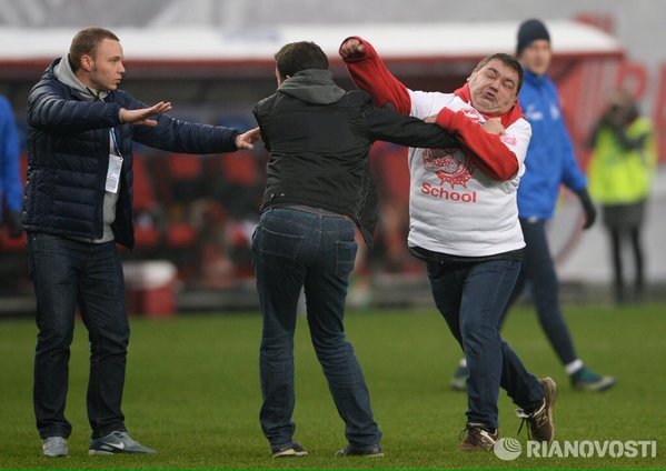 Сотрудник «Динамо» Дмитрий Дерунец прокомментировал инцидент, который произошел во время игры против «Спартака» (2:3). – Человек выбежал на поле. И здесь вопрос к службе безопасности, как он там оказался. Смотрю, нет никого. Мы пошли к нему вместе с Щеголевым, это один из ответственных за клуб болельщиков «Динамо», который спустился к полю, чтобы провести конкурс. Болельщик поворачивается ко мне и начинается безостановочный поток мата. Да, я его ударил. – То есть первым ударили вы? – Да. Потом я дал пинка и это было неправильно. В спину этого делать было ни в коем случае нельзя. Просто не ожидал такого потока брани в свой адрес, – сказал Дерунец.