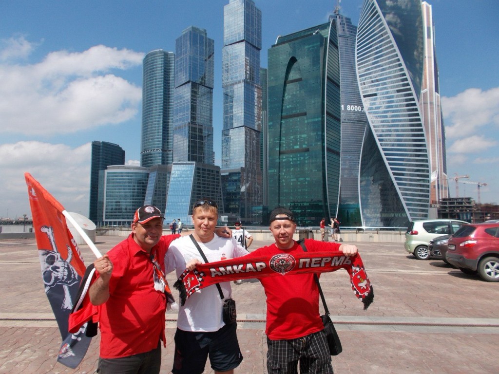 Кстати, подобные разъяснительные беседы в течение дня пришлось проводить не раз. Роджера я не сворачивал, поэтому пассажиры метро и прохожие на улицах оказались в курсе, что в гости в Москву приехал Сам Великий Футбольный Клуб «Амкар» Пермь!!! Особенно клёво, когда едешь на эскалаторе и наблюдаешь, что ВЕСЬ встречный поток внимательно вглядывается и вчитывается в родного «Роджера»! Некоторые фотографировали, особенно на Старом Арбате – будет людям, что дома показать где-нибудь в Салехарде или Нюрнберге, похвастаться – вот, болельщиков «Амкара» видел!!!