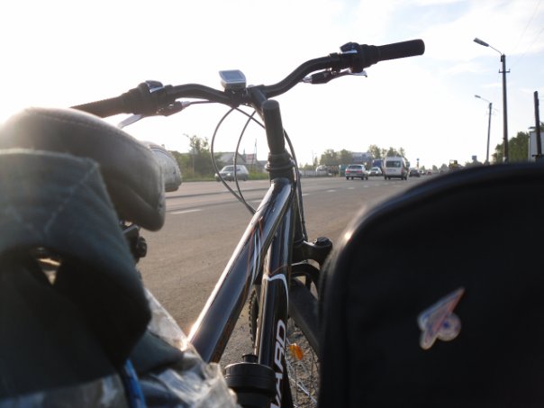 Но уже на 34 км заднее колесо моего велосипеда прокололось и нам пришлось его менять, управились за пол часа и задумались, что если так часто будут колоться шины, то далеко мы не уедем. Поэтому старались ехать аккуратно и все время держаться на трассе, так как на обочине было много осколков и железок. Потихоньку стали привыкать к постоянно проезжающим фурам мимо нас. До Тосно доехали за часа 3 и сделали первый привал на остановке, как же было голимо увидеть перед собой автобус с надписью питер-тосно 60 р. ведь мы жали на педали 3 часа а этот бас менее чем за час доехал сюда и всего за каких то 60 р. Кстате, ехали мы не по трассе а через Тосно ибо так было короче.