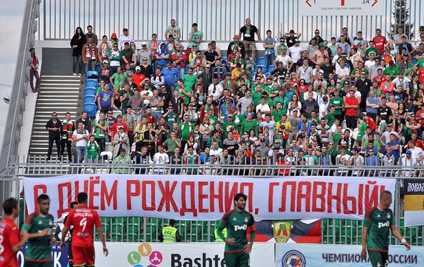 Купили билеты, зашли на сектор. Заняли удобное место для просмотра футбола, так – как шизить особо не было настроя, в итоге со стартовым свистком мы начали поддерживать команду и гнать ее вперед! Под конец первого тайма на сектор зашли опоздавшие на матч два товарища, которые добирались до Уфы автостопом. В начале второго тайма пока не было шизы, я исполнил главный хит Блестящих ЧАЧАЧА, который поддержало несколько человек. Начало второго тайма. Шиза оставляла желать лучшего, народу который хотел, поддерживать было очень мало и было тяжело зарядить что то стоящее. По самому футболу скажу пару слов, наверное, было видно, что мы сильнее Уфы, как всегда феерил Касаев, Ниасс забивает очередной гол, порадовал. Исполняем всем сектором Три гола, все радуются. А дальше случилось, то о чем я мечтал долгое время. На 87 минуте спускаемся вниз к решетке в ожидание футболок. Команда подходит близко, но впритык никто не подошел. Когда надежда уже пропала, к нам в сторону пошел Гилерме, заметив эту движуху, я сместился немного в центр и прыгнул за футболкой. Футболку поймали 3 человека, 1 сразу слился и я остался 1 на 1 с парнишкой. Я предложил ему разобраться по-мужски и сыграть в старую, добрую игру цуе фа. В итоге я показываю камень, а он ножницы и маленькая мечта сбылась, футболка игрока у меня. После этого я начал скакать по всему сектору от радости. Чуть позже к нам подошел главный тренер, которого мы поздравили с прошедшим днем рождения, а он пожал руки всем прибывшим фанатам. Настроение +100. Случилось все, о чем говорил еще накануне в маршрутке. Победа Локомотива с крупным счетом есть, футболку игрока получил.